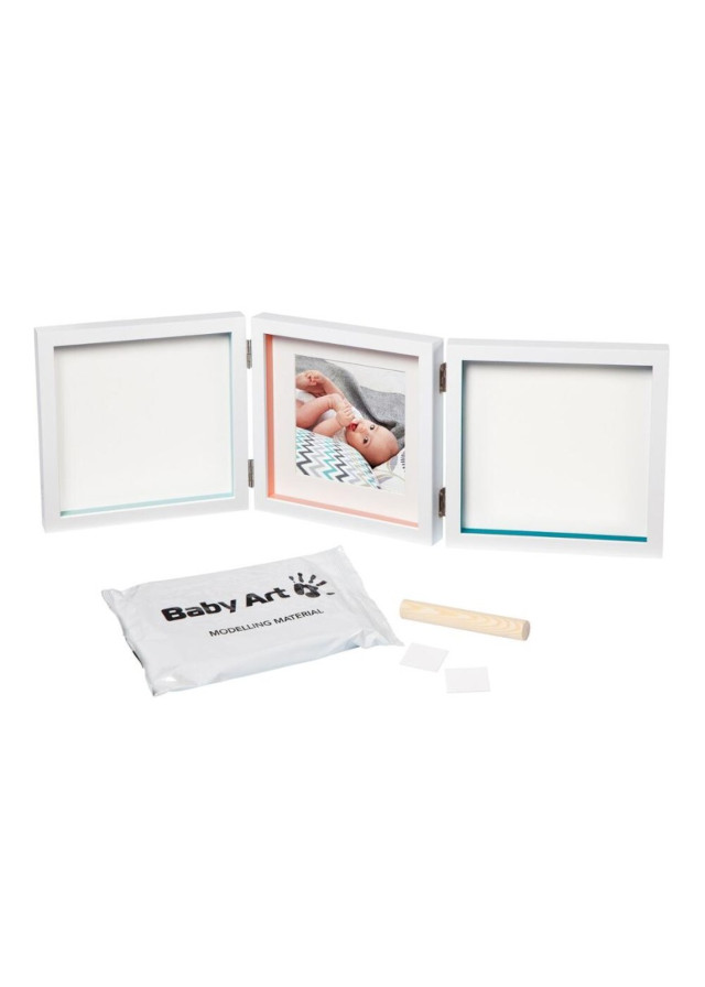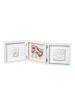 Três faces: duas para colocar a impressão do pé e/ou da mão e outra para colocar uma fotografia