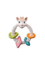 O conjunto de presente Sophie la girafe inclui, por um lado, o mordedor Sophie la girafe, que é conhecido por ser o primeiro brinquedo para bebês que desperta todos os seus sentidos e o chocalho Colo’rings, ambos feitos de borracha hevea 100% natural.