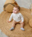 Macacão manga curta com estampa floral rosa morango e buquê de flores rosa.