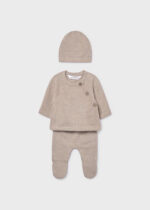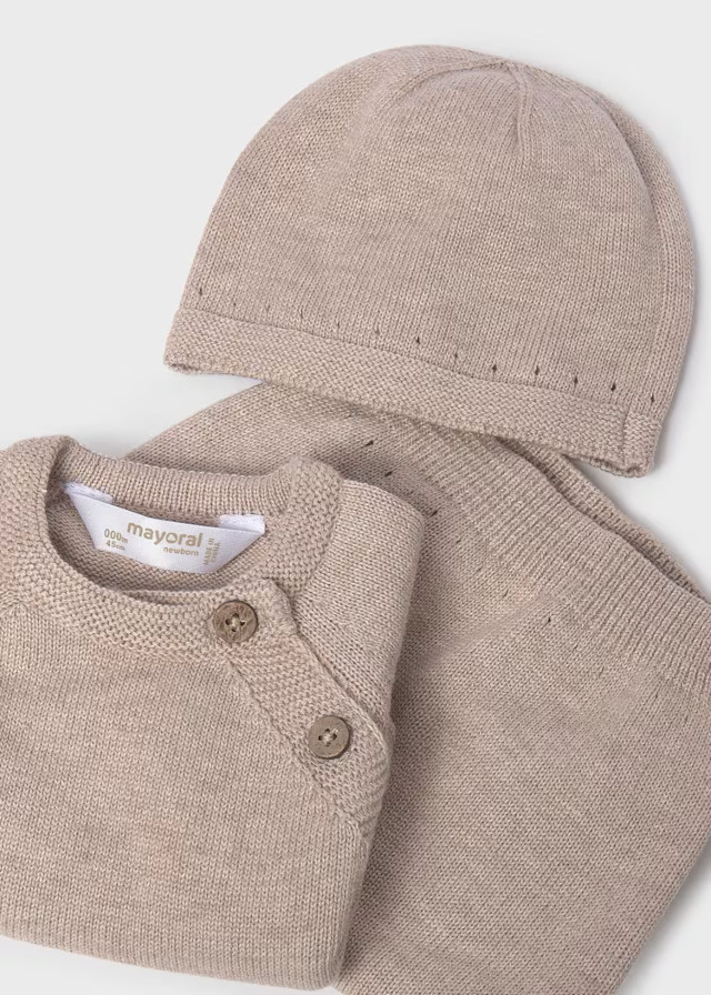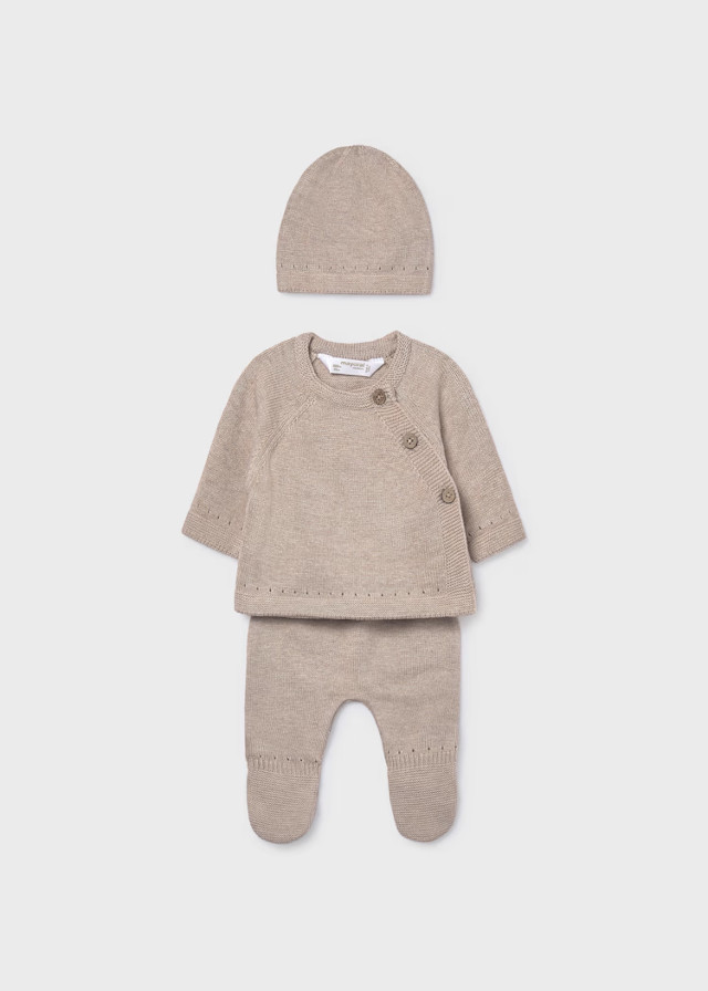 Tecido de ponto tricô de tato suave e agradável. Elementos decorativos: motivos abertos.