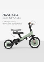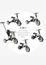 Modos de uso: 5 em 1 – Carrinho, triciclo assistido, triciclo com direção livre e triciclo independente
